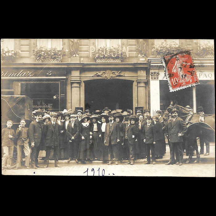 왼쪽 위부터] Jean Béraud(1907) 'La Rue de la Paix' 그림에서 오른쪽에 파퀸 하우스가 보인다 /옆서(1910) PAQUIN과 MARINDAZ 하우스:3 RUE DE LA PAIX, 파퀸 하우스 앞에 직원으로 추정되는 사람들이 있다/ Henri Gervex(1906). 파퀸에서 5시간(Five Hours at Paquin), 중앙에 쟌느가 왼쪽 뒤에 이사도르가 있다. / Isaac Israels(1865-1934), 파리의 파퀸작업장(Studio Paquin, Paris)